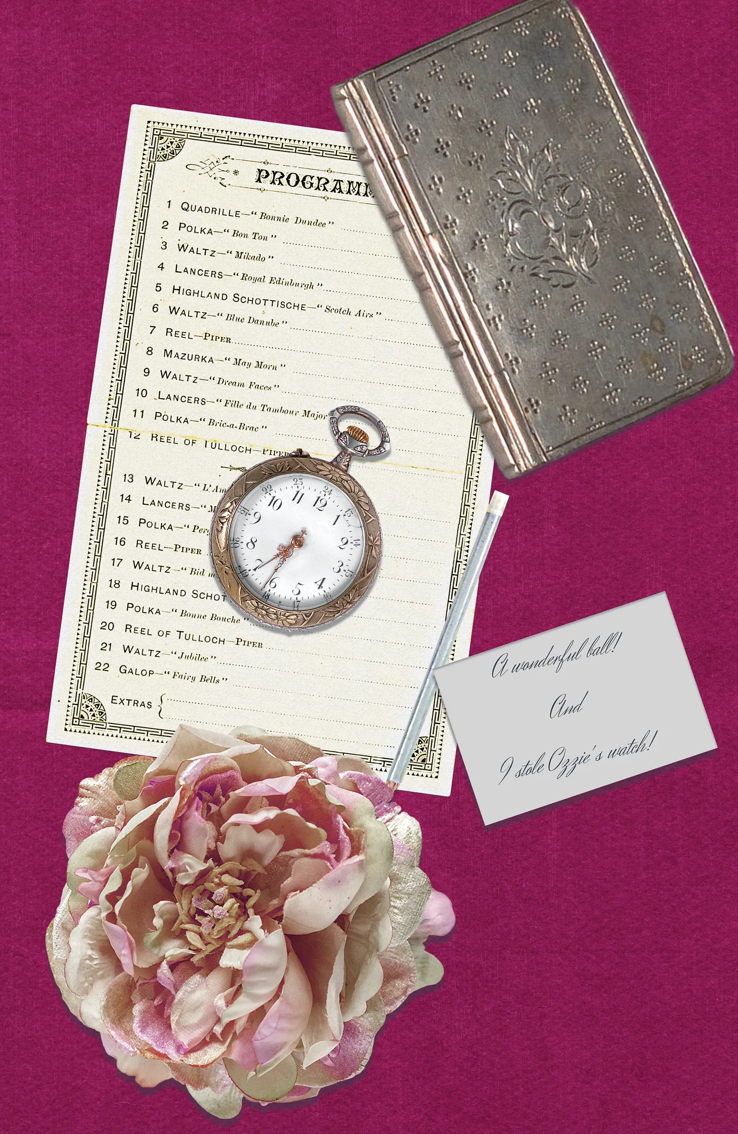 A little vocabulary, because every revolution has its own vocabulary. The pocket watch shown above is an artifact. The page it is part of is a collection and becomes a ‘Museum Moment’ for the reader. It shouldn’t be a stretch for the reader to imagine those items, in this case, on a bedspread after the ball, where she bonded with the hero over pranking her brother, his best friend. The hope is that the image reinforces the words on the page, not that it supplants them.